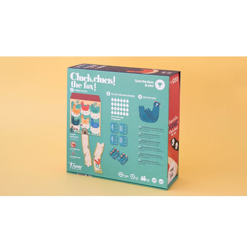 Save the chickens and eggs from the jaws of the fox with this cooperative game from Londji! The dice will decide if we you save one egg, two eggs, one of the chickens or if, unfortunately, the fox gets closer to the nest. Make the best decision to achieve your goal!